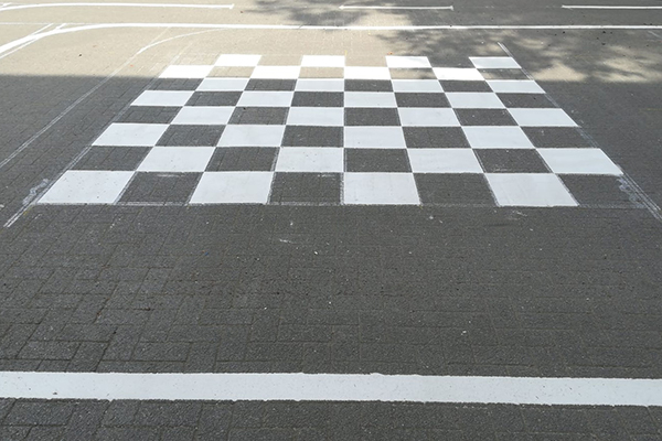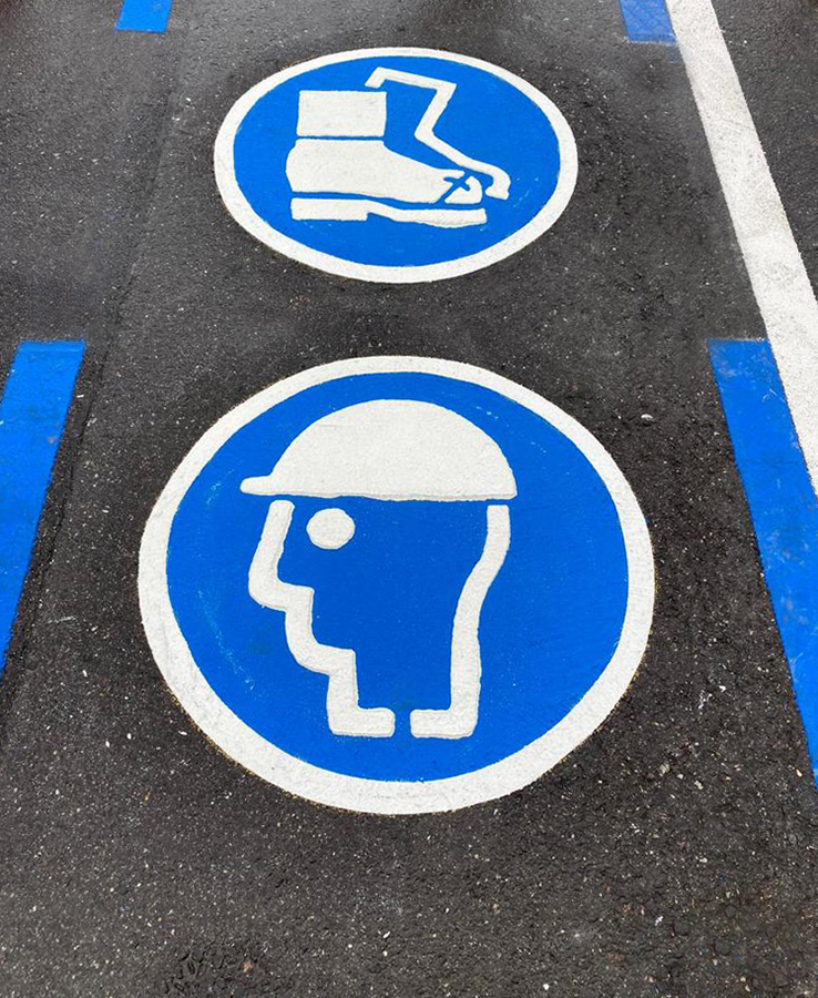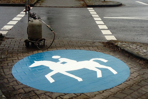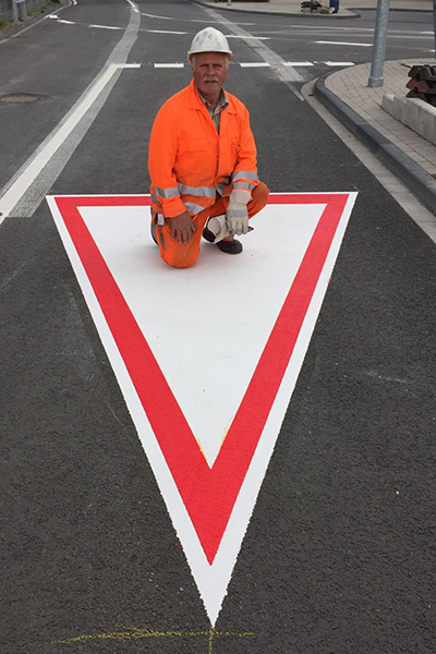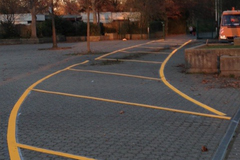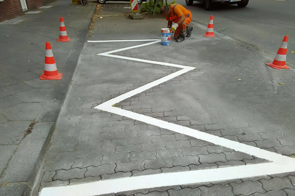 Je nach Größe der gewünschten Markierung und dem Einsatzbereich verlegen wir vorgefertigte Straßenmarkierungen oder fertigen diese selbst in Handarbeit an.