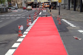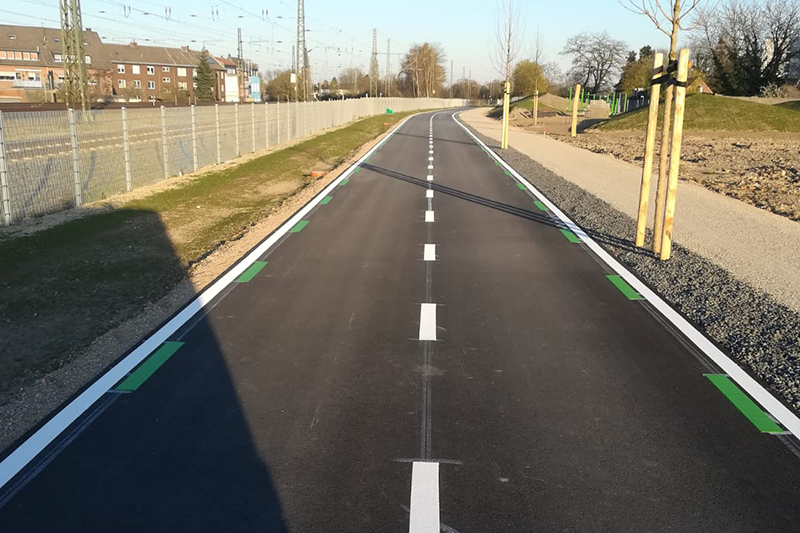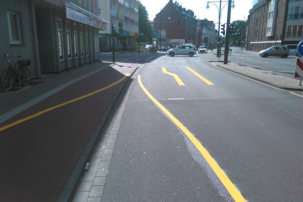 Farbige Radwegmarkierungen Einsatz von grünen Sicherheitsstreifen zur Reduzierung von gefährlichen Situationen für Radfahrer.