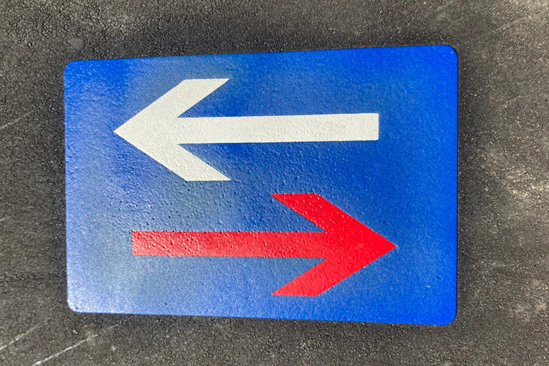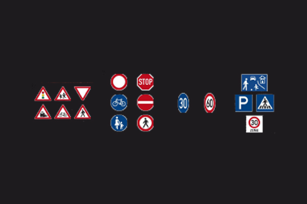 bunte Verkehrszeichen, individuelle Schriftzüge und Piktogramme nach Kundenwunsch