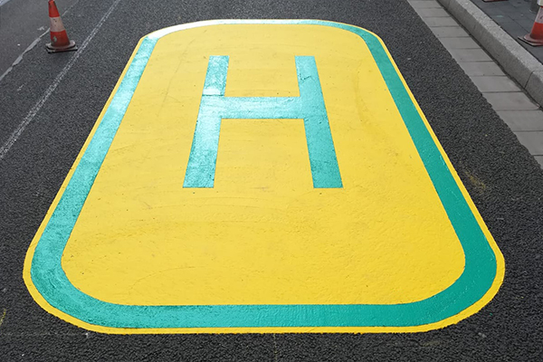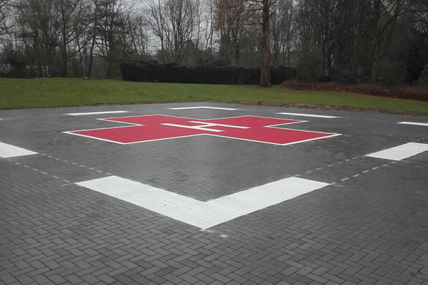 Flugbetriebsflächen, Heliport mit Untergrundeinfärbung