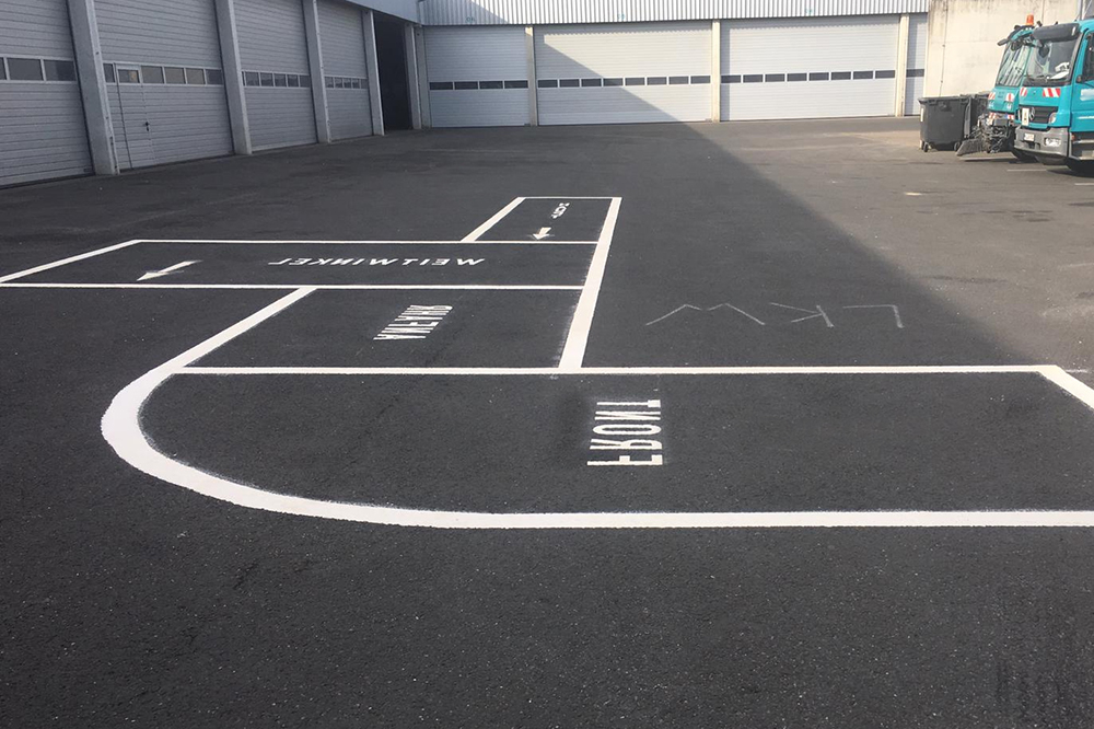Parkplätze, Parkhäuser, Tiefgaragen, Parkdecks, Schulhöfe, Spielfelder, Spielplätze, Verkehrsübungsplätze, Flughäfen, Firmengelände, Privatgelände, LKW Verladeplätze, Produktionshallen, Lagerhäuser, Werkshallen, Industrie- und Werkswege, Lagerplätze, Logistikflächen, Spiegeleinstellflächen,…